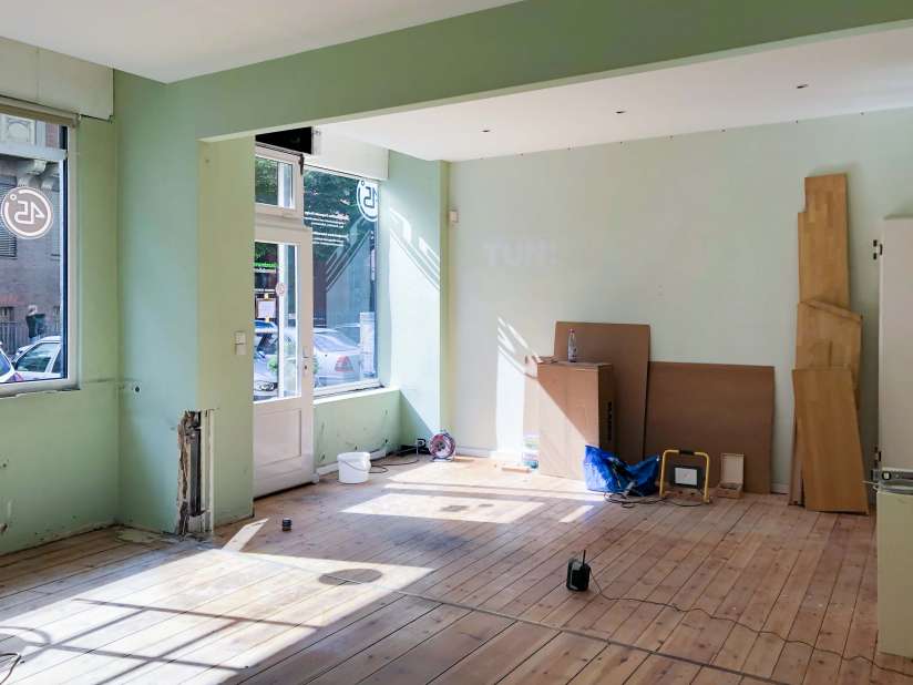 Wir haben umgebaut! Komplett, das ganze Büro: neue Fenster, neue Tür, freigelegte Klinkerwände, Abziehen der alten Dielen, neue Küche, neuer Besprechungsraum, mehr Arbeitsplätze, neues Netzwerk.