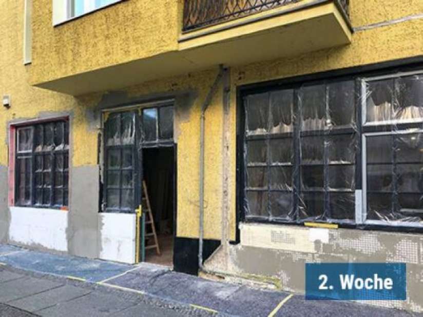 Wir versetzten im Rahmen des energetischen Fensteraustauschs auch gleich die Eingangstür, um durch weniger Laufwege mehr Platz für das Team zu gewinnen. Zusätzlich wurde noch der alte Durchgang zur Teeküche und zum Bad geschlossen.