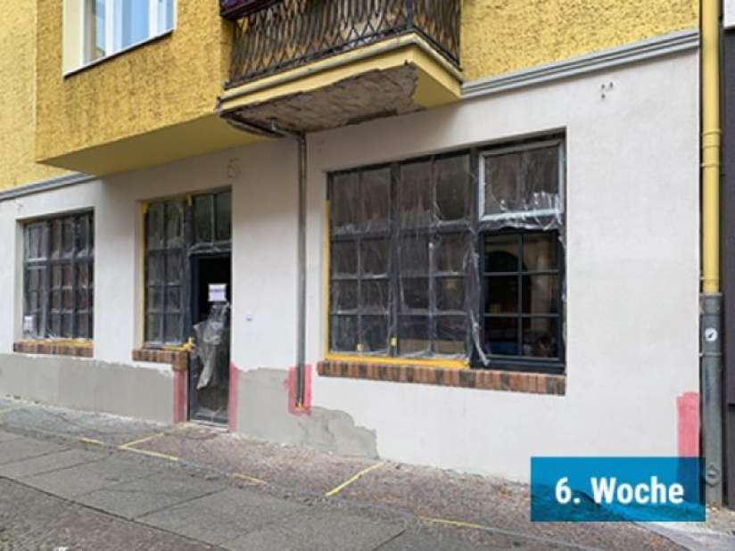 Der alte Durchgang zum grünen Innenhof wurde wieder geöffnet. So können wir uns in den Pausen ein wenig frische Luft in ruhiger Atmosphäre gönnen. Dafür wird im Hof noch Platz für Bänke und Tische geschaffen